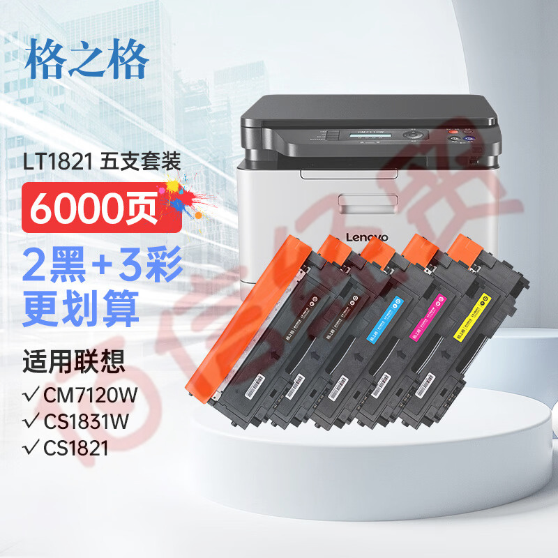 格之格LT1821粉盒適用聯(lián)想cm7120w墨盒 CS1831W粉盒 CS1821 CS1831硒鼓 CM7110W打印機(jī)墨盒大容量五支套裝 自營(yíng)