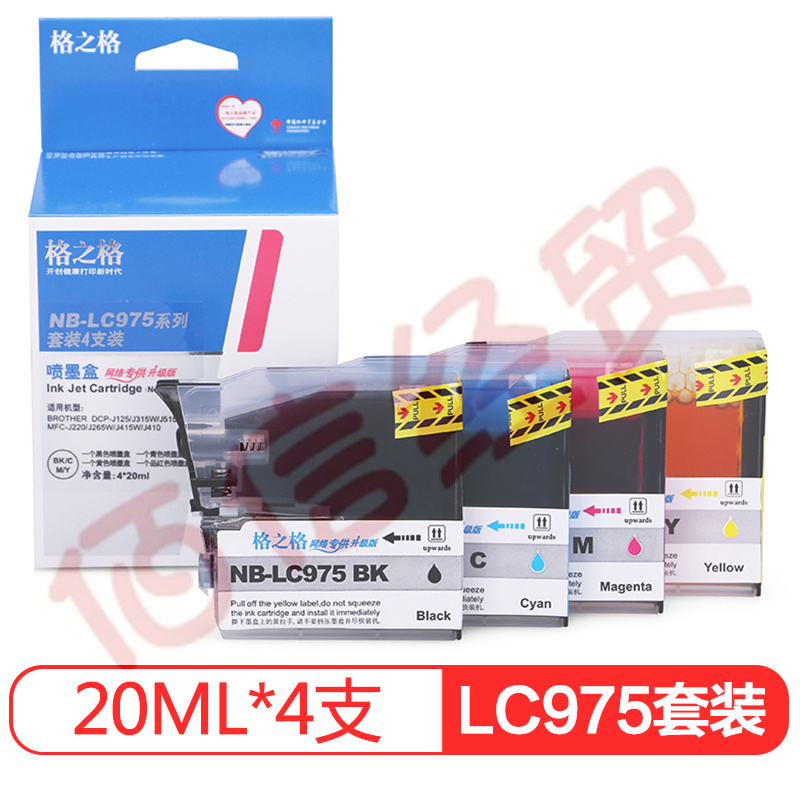 格之格NB-LC975彩色墨盒4支裝適用兄弟MFC-J220 MFC-J265W MFC-J410打印機(jī)墨盒 自營