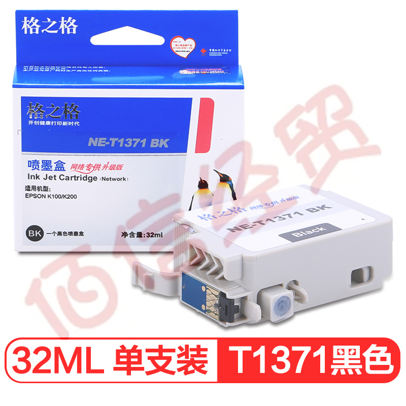 格之格 T1371黑色墨盒NE-T1371BK適用愛普生K100 K200打印機(jī)墨盒# 自營
