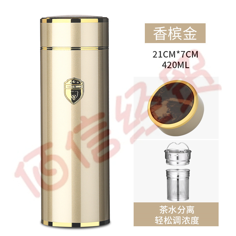 匡迪316不銹鋼商務保溫杯男女高檔泡茶杯大容量水杯禮品定制刻印字杯 香檳金茶水分離網(wǎng) 420ml 自營