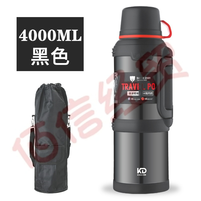 匡迪304不銹鋼保溫壺3.6L旅行壺4L大容量戶外車載運(yùn)動(dòng)暖水壺登山露營(yíng)釣魚自駕游熱水瓶 黑色4000ml 自營(yíng)