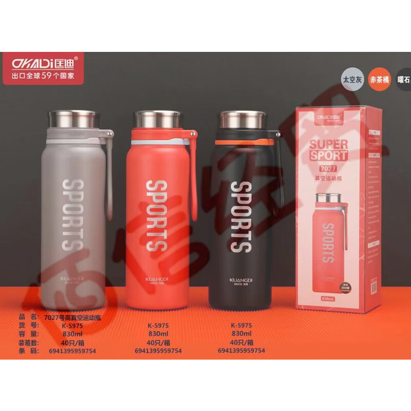 匡迪(DKADI) 新款匡迪號(hào)便攜真空杯內(nèi)外304不銹鋼禮品保溫杯戶外運(yùn)動(dòng)水杯 寶石橙 830ml 自營