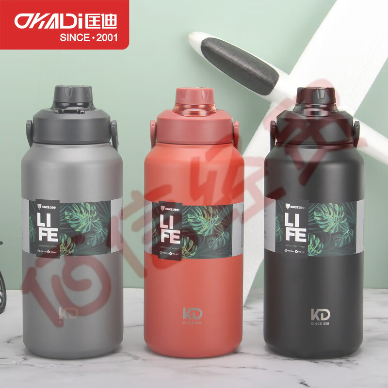 匡迪(DKADI) 匡迪7011號真空316不銹鋼內(nèi)膽提手拉環(huán)男女運(yùn)動便攜車載保溫杯 灰色 1300ML 自營