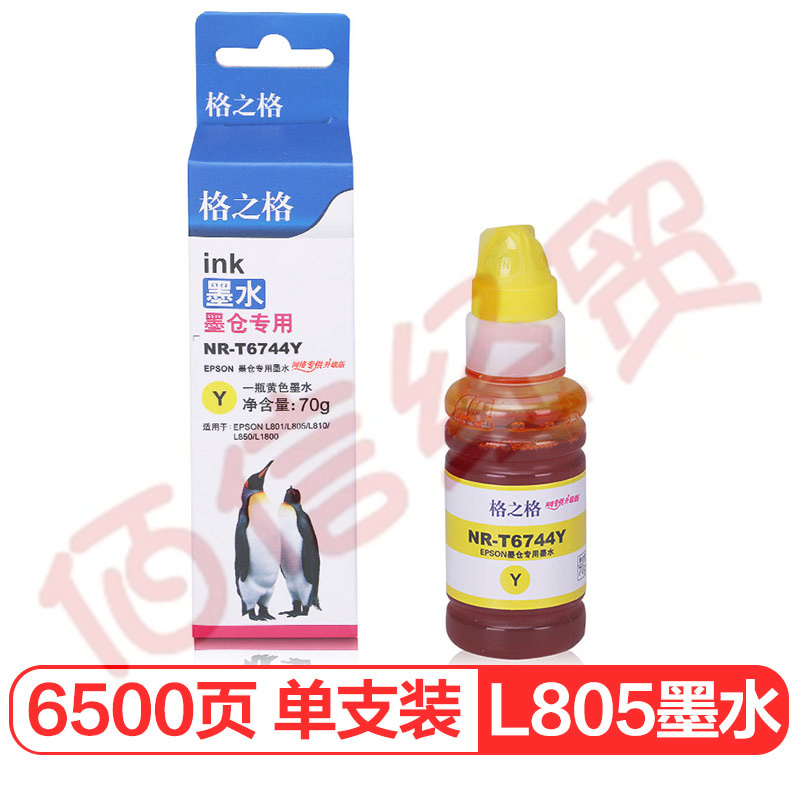 格之格T6741打印機(jī)墨水適用愛(ài)普生L801 L805 L810 L850 L1800墨倉(cāng)式打印機(jī)墨盒 T6744Y黃色 自營(yíng)