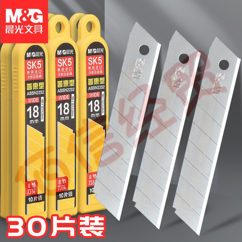 晨光(M&G)大號(hào)美工刀片18m鈦精鋼SK5不易生銹普惠型替換刀片ASSN2232 3盒共30片【大號(hào)刀片18mm/60度】 自營(yíng)