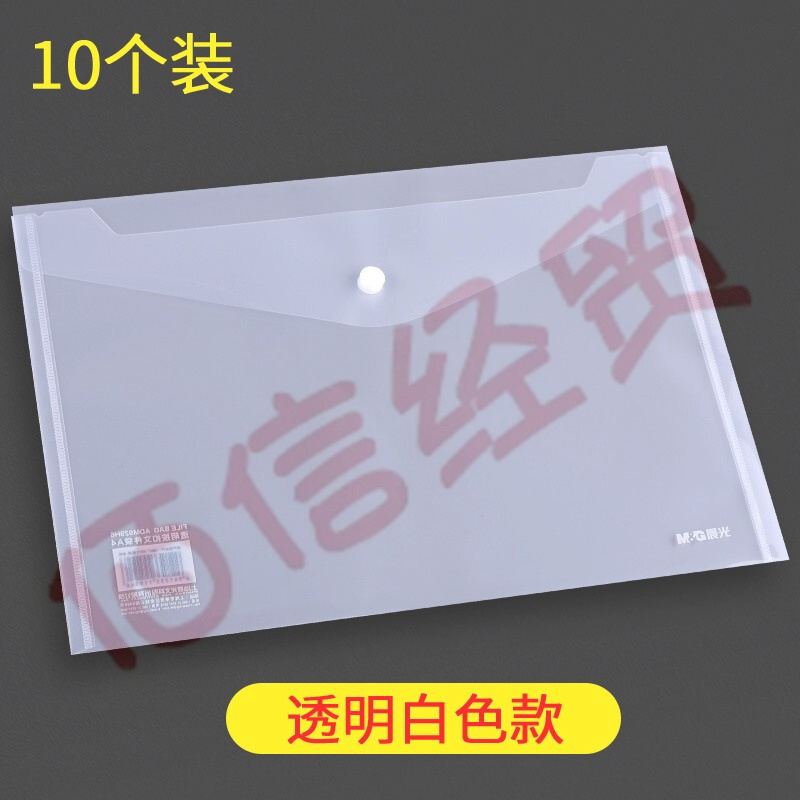 晨光 A4文件袋線扣袋紐扣袋按扣魔術(shù)貼資料袋透明學生試卷袋方格整理收納袋條紋分類袋多款可選 透明按扣文件袋(929H6)10個 自營