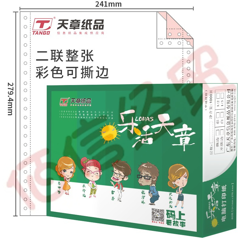 天章(TANGO)樂活天章 針式打印紙 二聯(lián)整張撕邊電腦打印紙 彩色二聯(lián)打印紙(241-2S 白紅 1000頁/箱) 自營