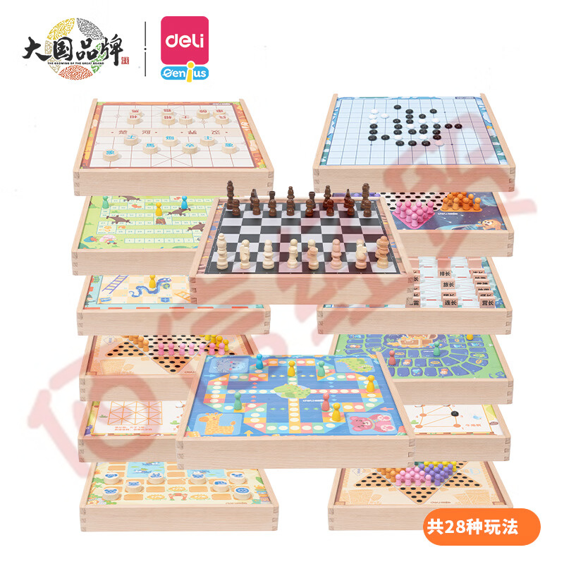 得力(deli)28合一棋五子棋飛行棋跳棋圍棋等多功能棋玩具YW107 自營