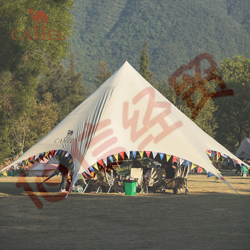 駱駝(CAMEL)【天穹】戶外天幕特大款全遮光黑膠防曬天幕防雨加厚遮陽棚 1V32264386,象牙黃,黑膠全遮光 自營