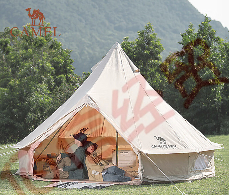 駱駝(CAMEL)【隱】帳篷戶外露營帳野餐便攜式折疊金字塔蒙古包棉布印第安帳篷 G101,淺卡其【隱-金字塔 II】 自營