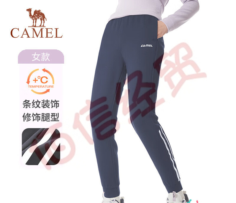 駱駝(CAMEL)運動褲女士休閑跑步寬松褲子百搭透氣束腳衛(wèi)褲長褲女 J1W1Y6108,藏青,女 S 自營