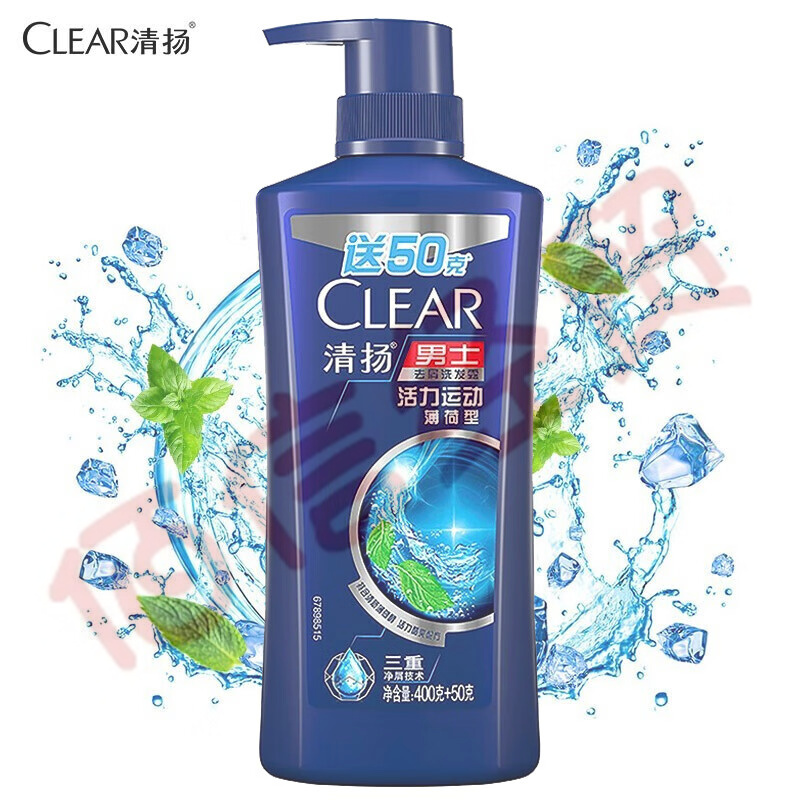 清揚(yáng)洗發(fā)水洗發(fā)露 男士去屑450G 活力運(yùn)動薄荷香型 男士專用-(12瓶/箱-整箱售) 自營