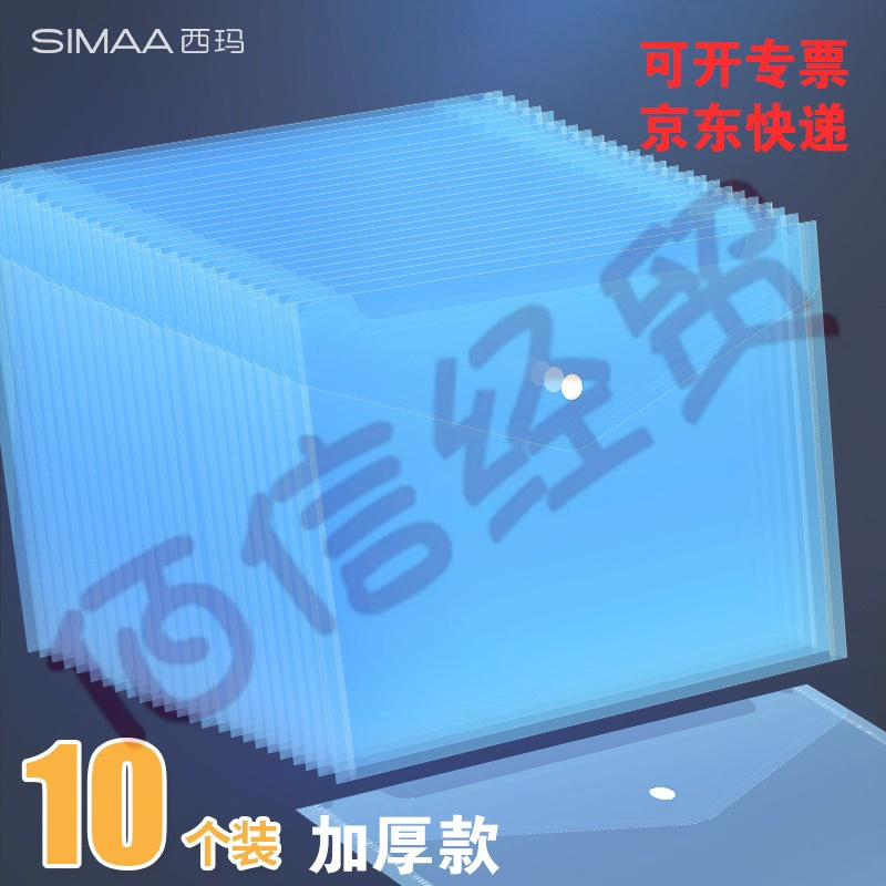 西瑪表單 10個裝 A4藍色透明按扣文件袋 加厚 試卷收納 防水資料檔案袋 學生文件 6129 藍色加厚款-10只裝 6129 自營