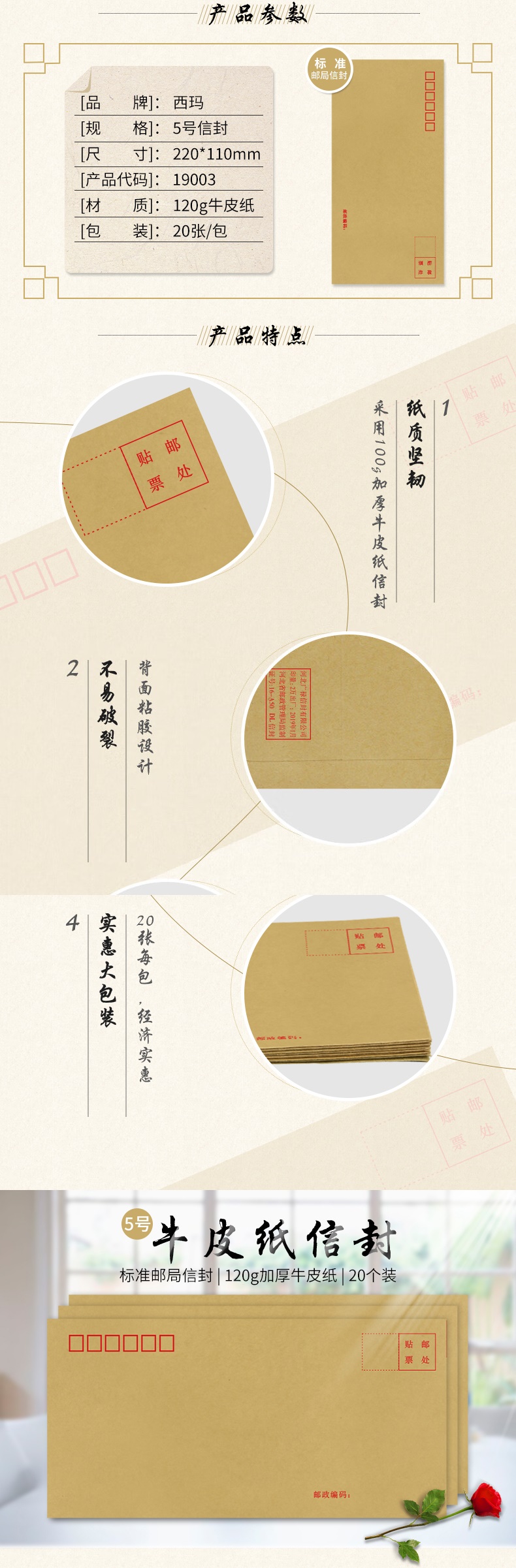 西瑪(SIMAA)20張5號(hào)牛皮紙信封 120g木漿郵局標(biāo)準(zhǔn)信封220*110mm19003(10個(gè)起售) 自營