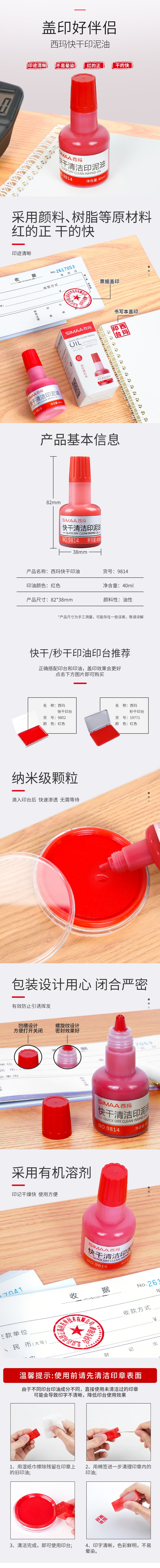 西瑪(SIMAA)快干清潔印泥油紅色 印油印泥 40ml財務(wù)印章 辦公用品 9814(10個起售) 自營