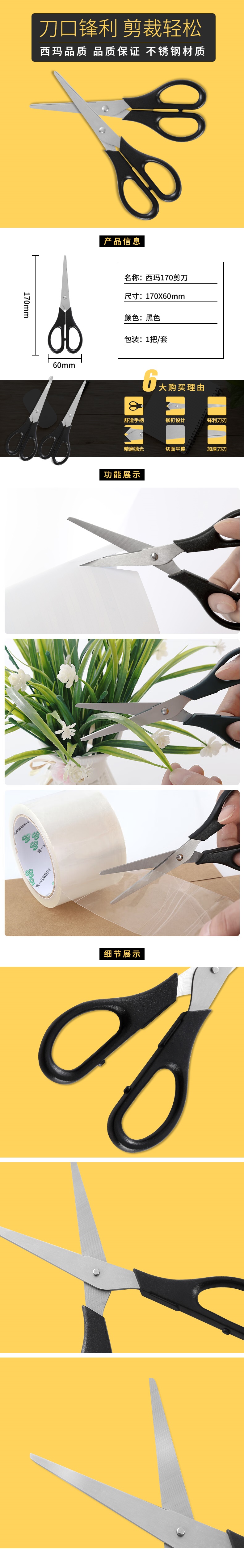 西瑪(SIMAA)170mm辦公生活家用剪刀 學(xué)生手工裁紙剪紙刀不銹鋼 1把 顏色隨機 17304(5個起售) 自營