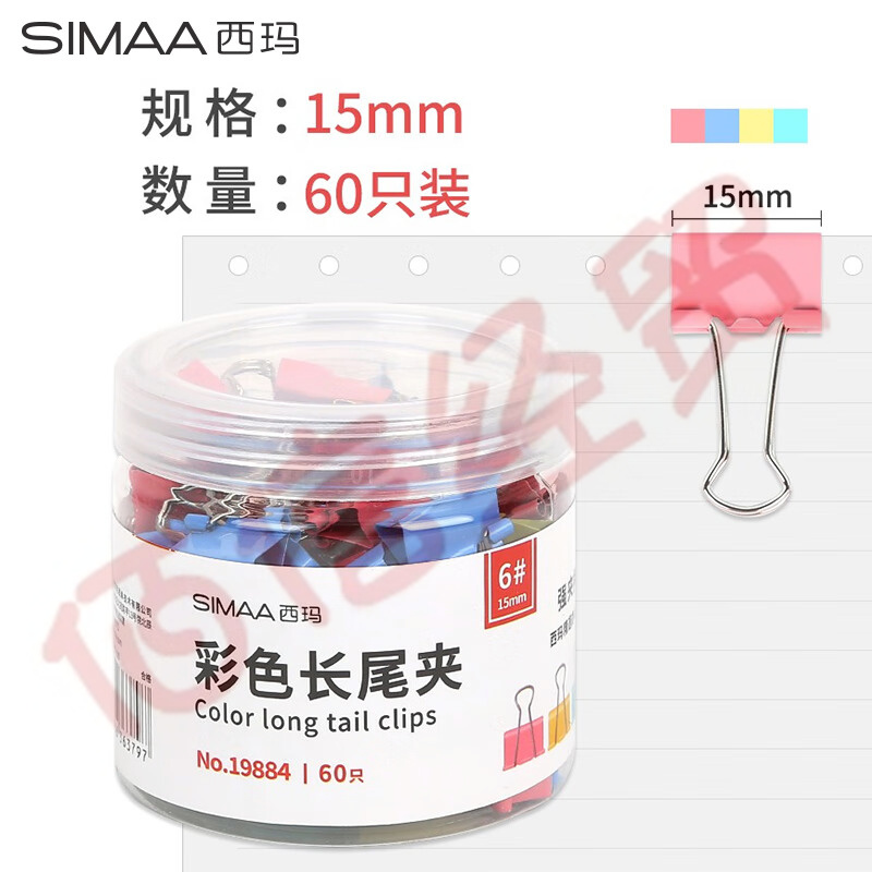 西瑪(SIMAA)60只彩色長尾夾票夾15mm 燕尾夾辦公用品19884(5個(gè)起售) 自營