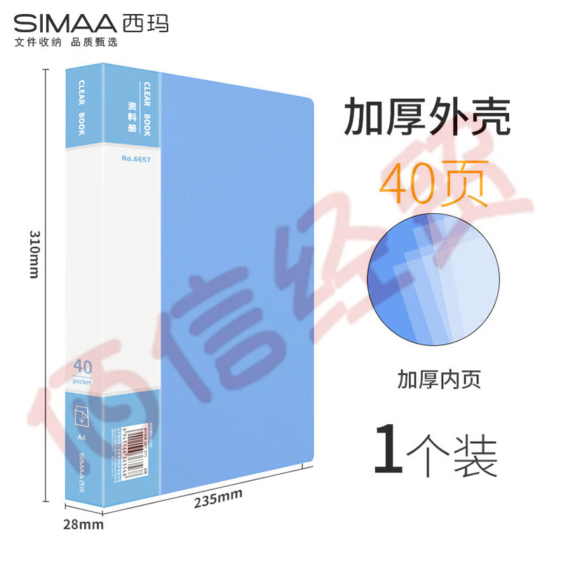 西瑪(SIMAA)A4/40頁資料冊(cè)/插袋文件冊(cè)/活頁文件夾/文件收納袋 1只 辦公用品6657(10個(gè)起售) 自營(yíng)