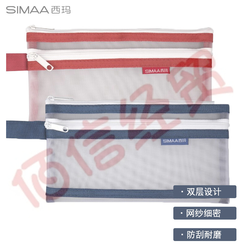 西瑪(SIMAA)透明網(wǎng)紗筆袋 學(xué)生日??荚嚬P袋收納袋 雙層筆袋深藍(lán)色 20216(10個起售) 自營