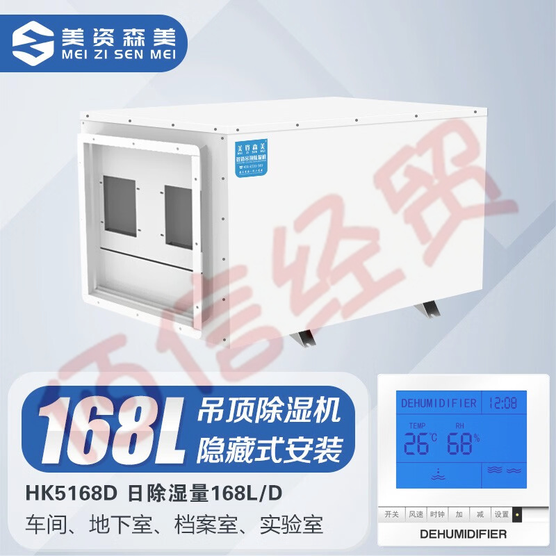 美資森美(MEIZISENMEI) 吊頂除濕機(jī)壁掛式工業(yè)中央抽濕機(jī)地下室管道除濕器吸頂式 HK5168D 日除濕量168L/D 自營