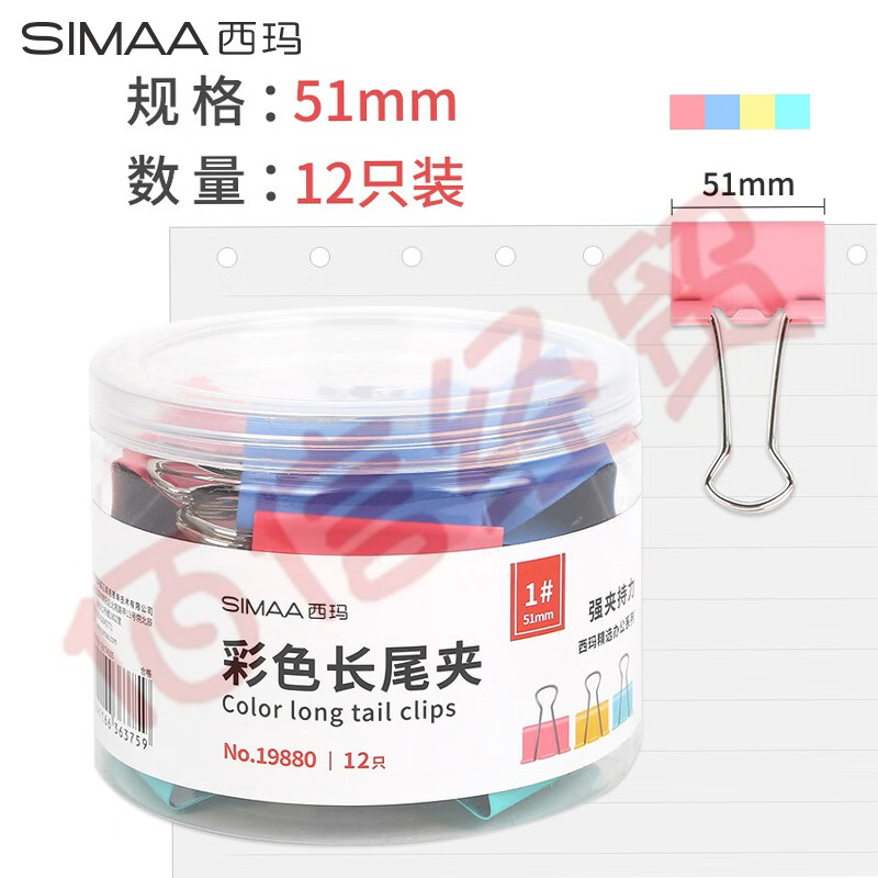 西瑪(SIMAA)12只彩色長(zhǎng)尾夾票夾51mm 燕尾夾辦公用品19880 自營(yíng)