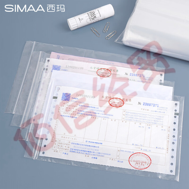西瑪(SIMAA)100只透明自封袋 275*160mm 票據(jù)收納 發(fā)票袋 自速封口PE防潮袋 6751 自營