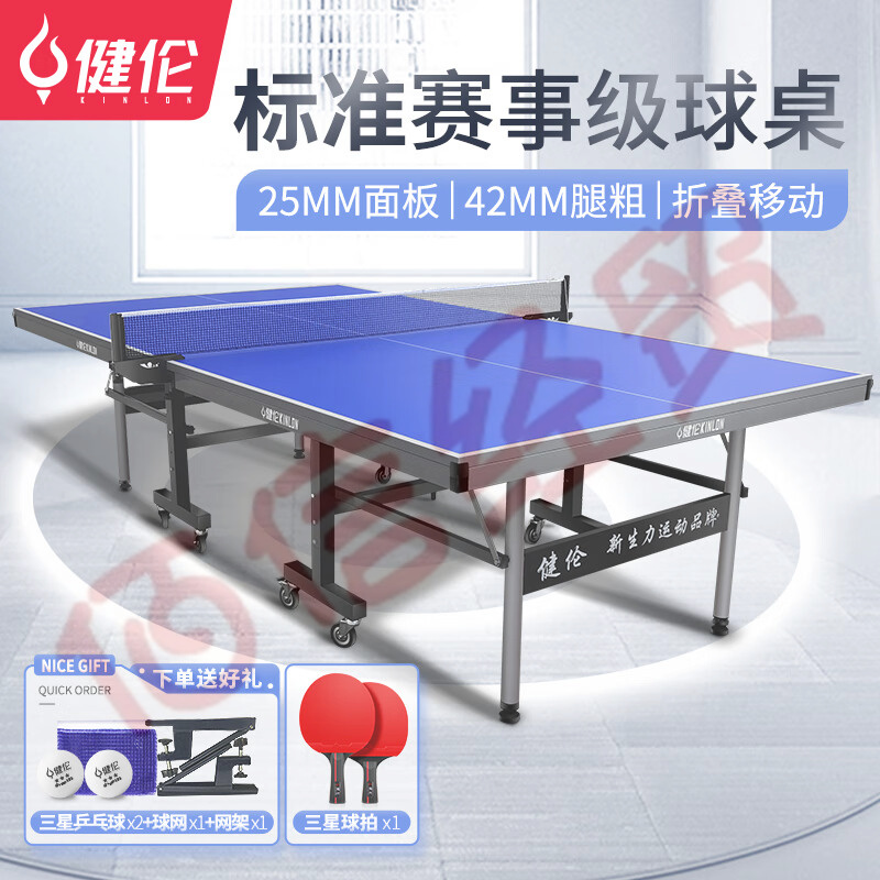 ¥1610.20健倫(JEEANLEAN) 乒乓球桌室內(nèi)家用可折疊比賽專業(yè)標準移動乒乓球臺戶外 賽事款KL326(25MM板加厚)
