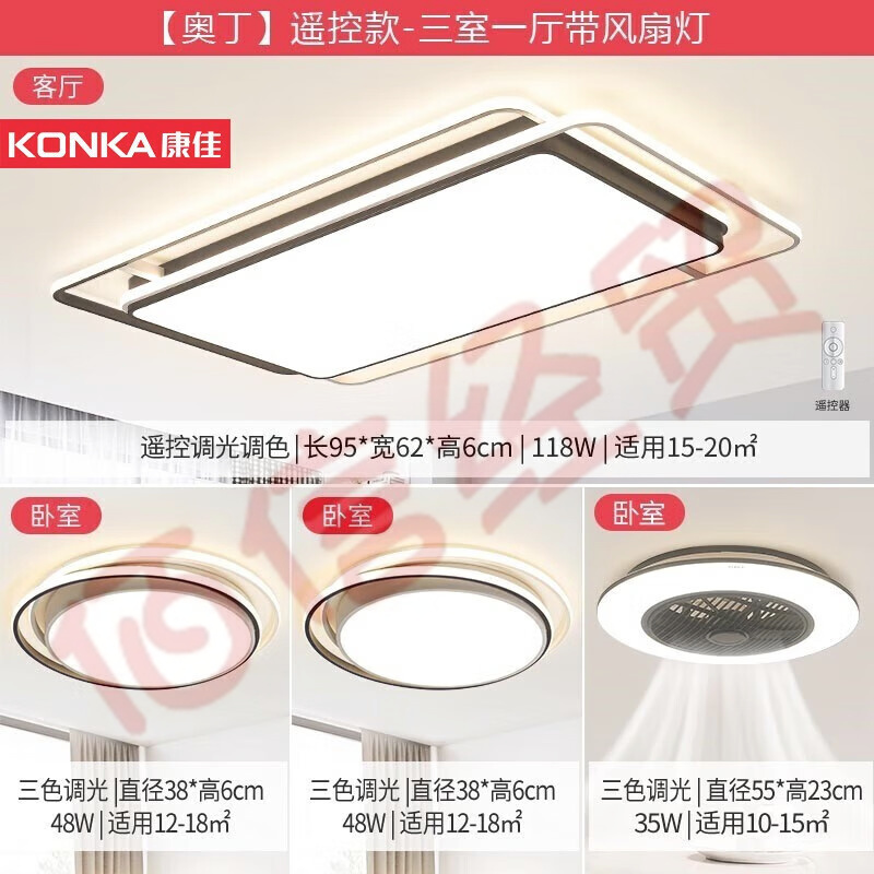 康佳(KONKA)照明后現(xiàn)代客廳燈臥室燈北歐輕奢LED吸頂燈現(xiàn)代簡約燈具套餐 【奧丁】三室一廳 自營