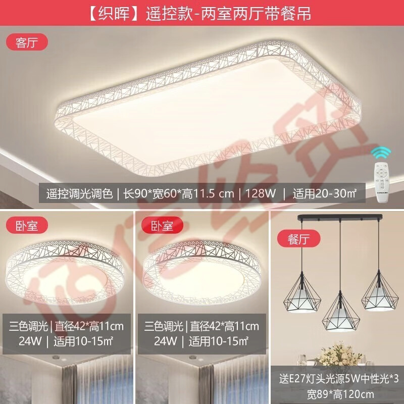 康佳(KONKA)客廳燈現(xiàn)代簡(jiǎn)約吸頂燈時(shí)尚燈新燈具套餐照明 【織暉】?jī)墒覂蓮d 自營(yíng)