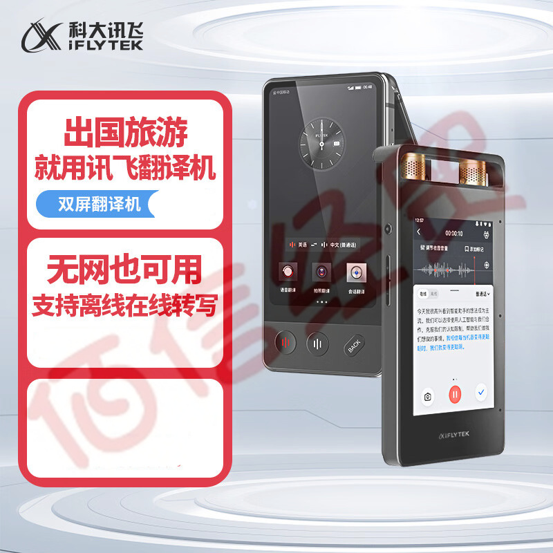 科大訊飛雙屏翻譯機和錄音筆SR502 32G+10G云存儲套裝 自營