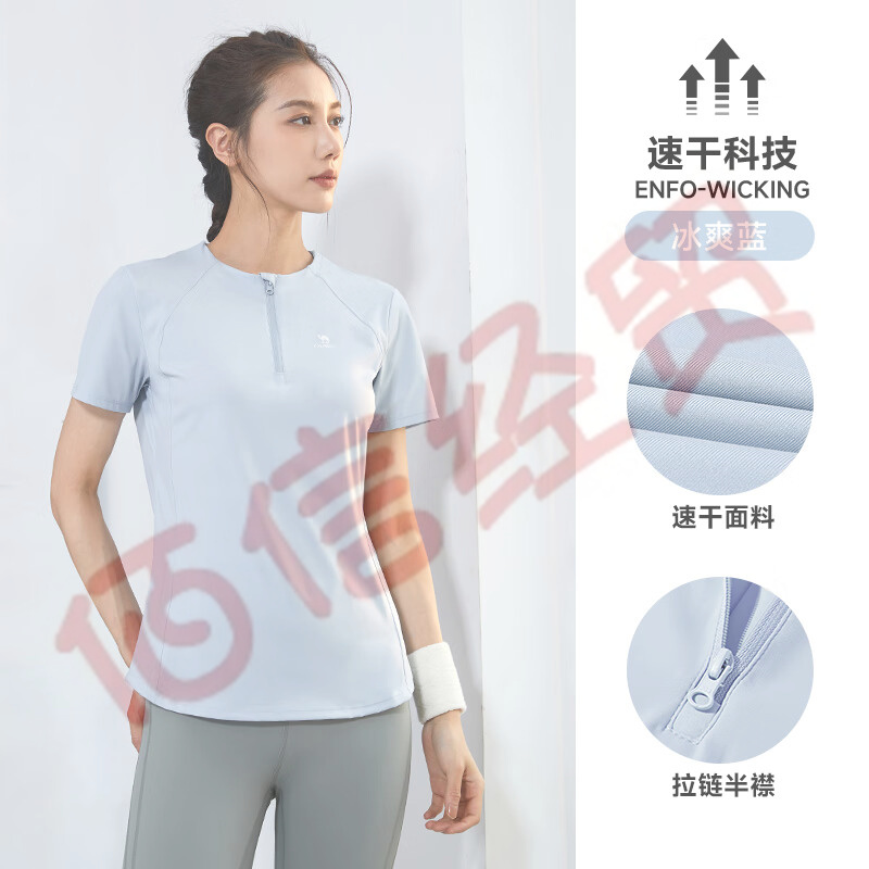 二澈雀運(yùn)動(dòng)短袖T恤速干衣女士2023夏季跑步瑜伽健身訓(xùn)練服立領(lǐng)上衣 C23BABH393,冰爽藍(lán),女 S 自營(yíng)