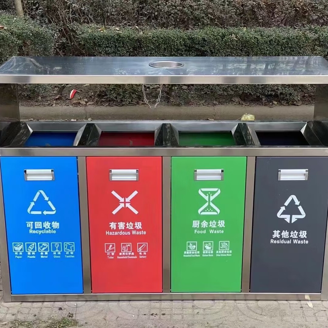 乙晨合分類垃圾桶帶輪垃圾桶腳踏垃圾桶金屬環(huán)衛(wèi)垃圾桶 不銹鋼四分類垃圾箱 自營