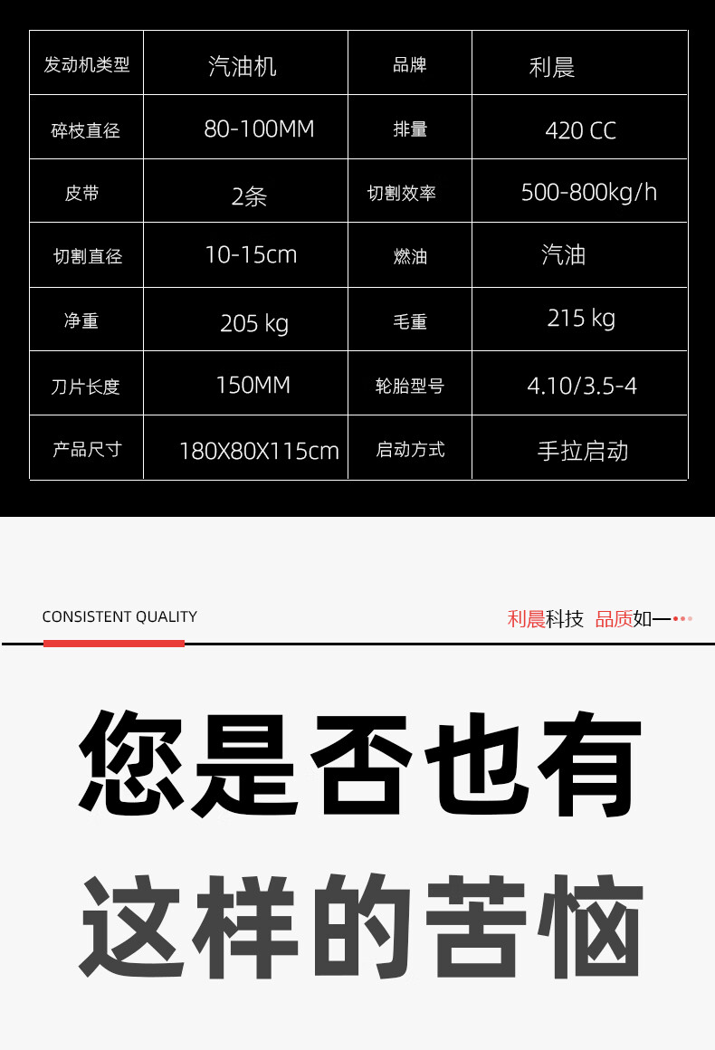 利晨 碎枝機(jī)木材樹枝粉碎機(jī)大型多功能園林碎木果園綠化移動式汽油葡萄枝玉米秸稈15馬力 LC-SZJ-15(定制款) 自營