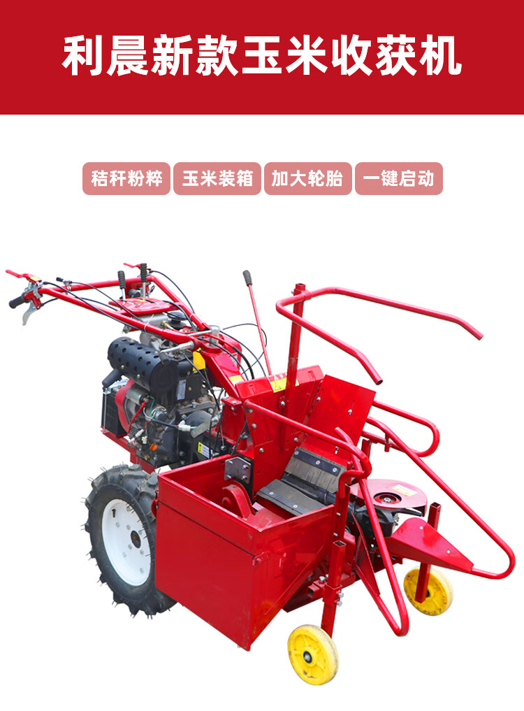 利晨 單行玉米收割機小型收玉米機器神器玉米聯(lián)合收獲機摘苞米機玉米稈粉碎秸稈還田一體機 195柴油齒輪款 自營