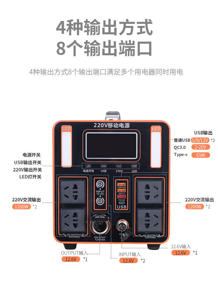 利晨戶外移動電源220V 600W便攜大容量直播帶插座電瓶自駕游露營 自營