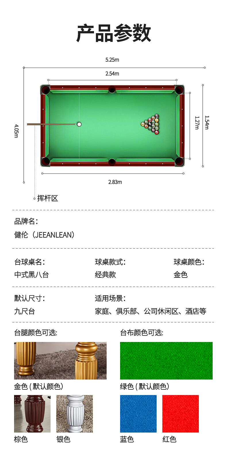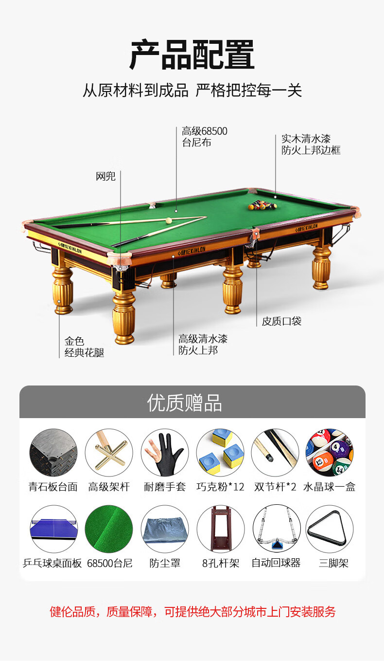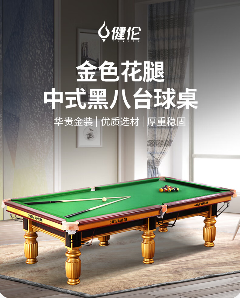健倫(JEEANLEAN)JLAB151標準臺球桌家用高端娛樂會所黑八美式桌球臺頂配版 自營