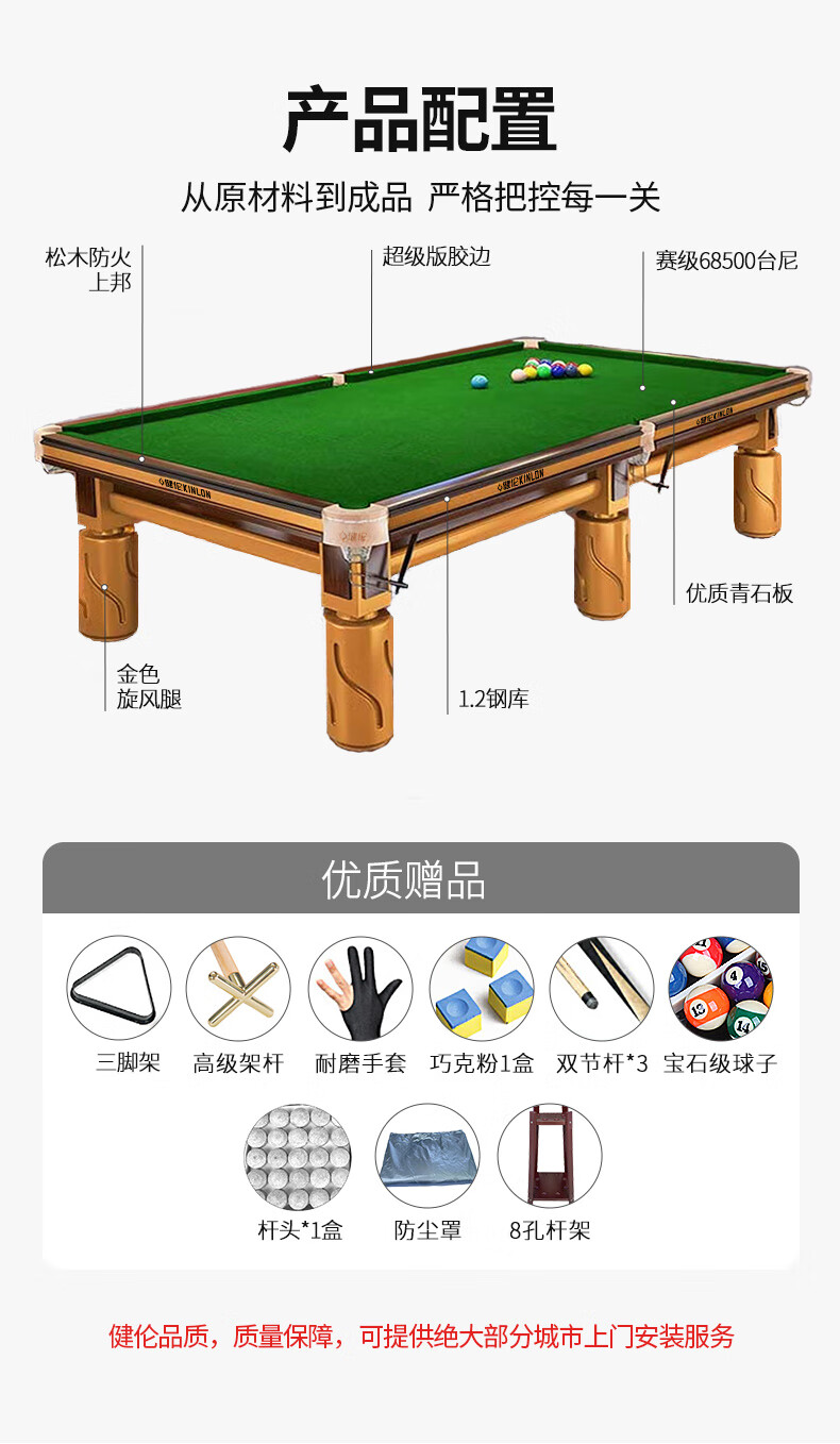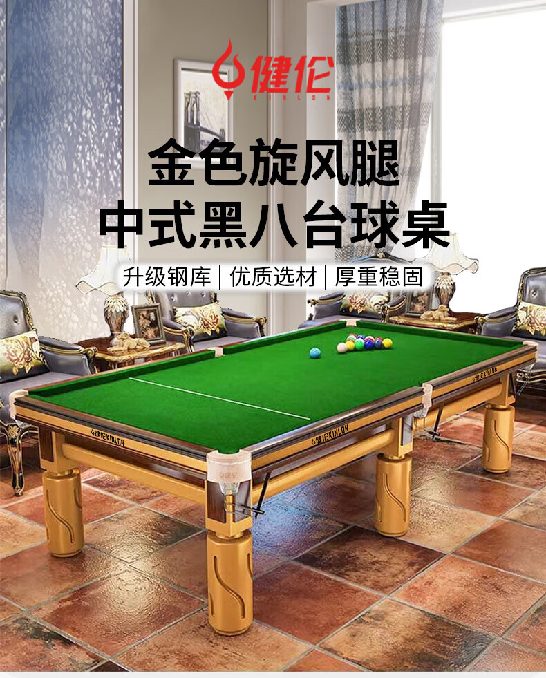 健倫(JEEANLEAN)JLAB127臺(tái)球桌標(biāo)準(zhǔn) 旋風(fēng)腿 8球黑八臺(tái)球桌 高質(zhì)量采購服務(wù)款 自營