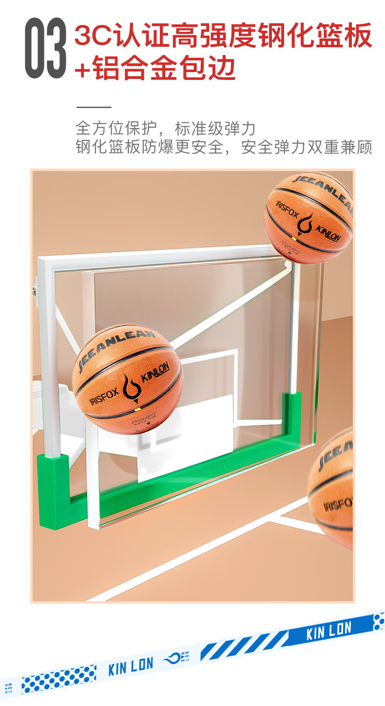 健倫(JEEANLEAN)JLAA160籃球架 標(biāo)準(zhǔn)成人戶外移動 三色仿液壓籃球架/單只 自營