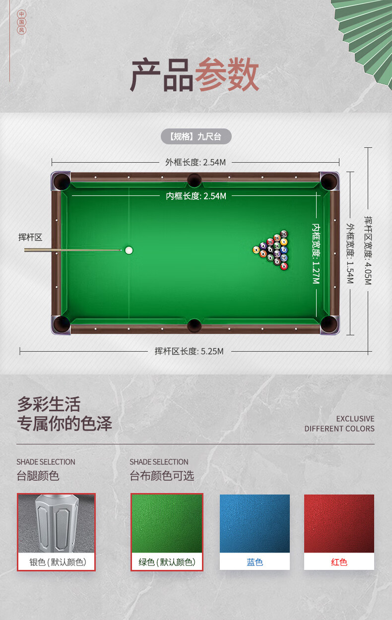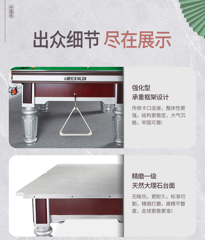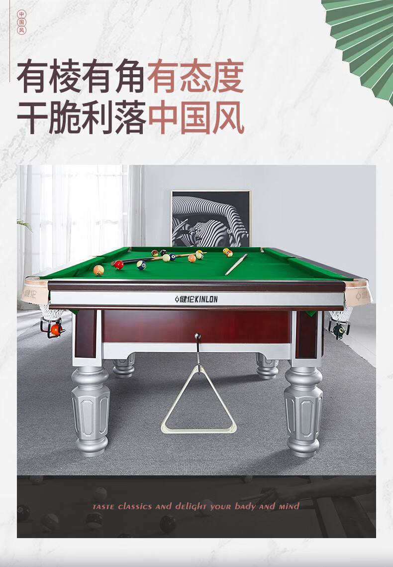 健倫臺球桌 鋼庫銀腿 標準九尺家用高端美式黑八 采購款JLAB128 自營