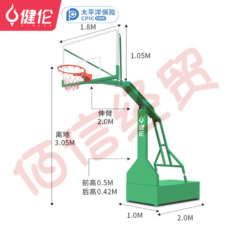 健倫(JEEANLEAN)JLAA123戶外籃球架標(biāo)準(zhǔn)成人訓(xùn)練移動(dòng)平箱籃球架一支(免費(fèi)安裝) 自營(yíng)