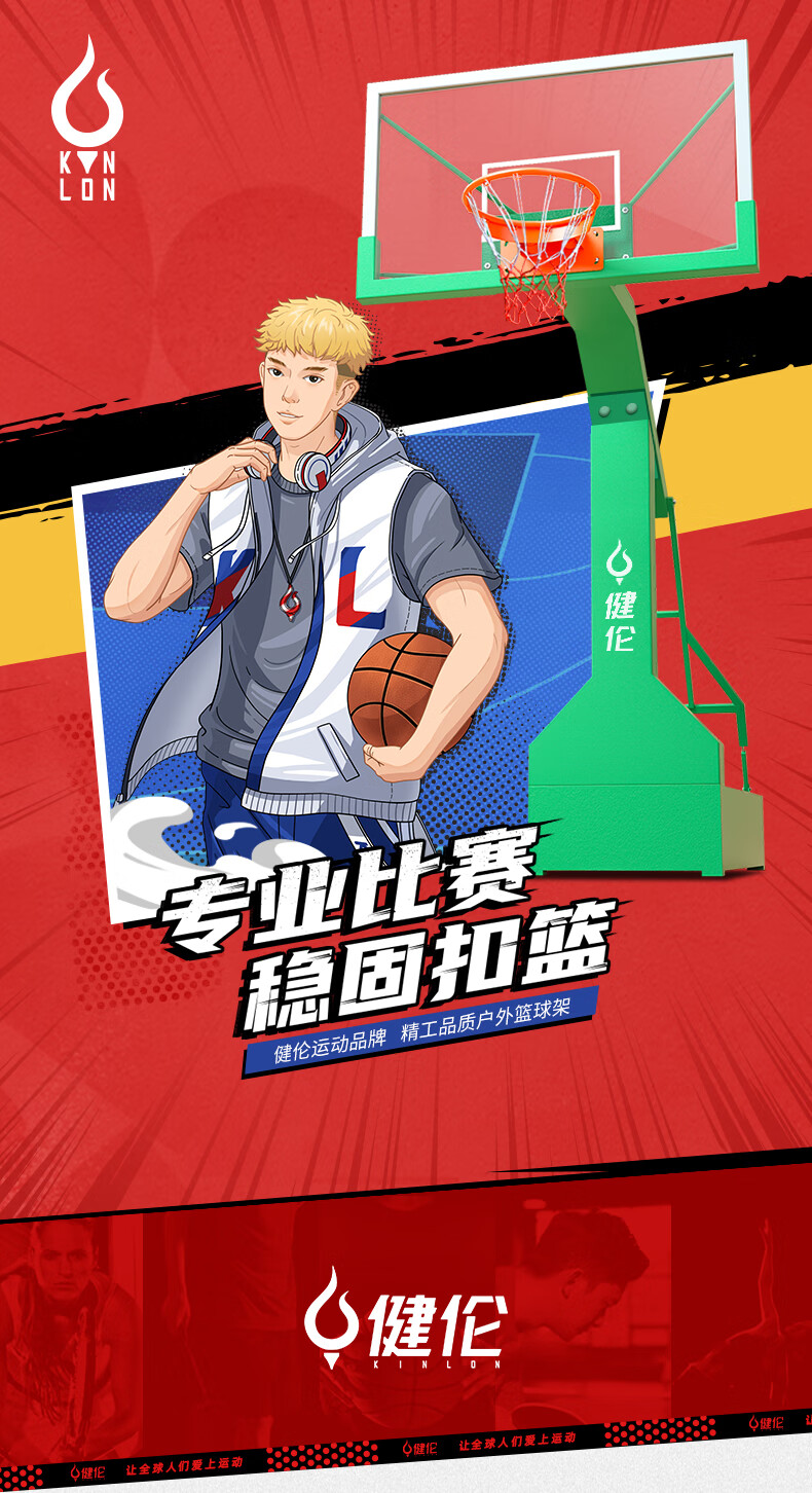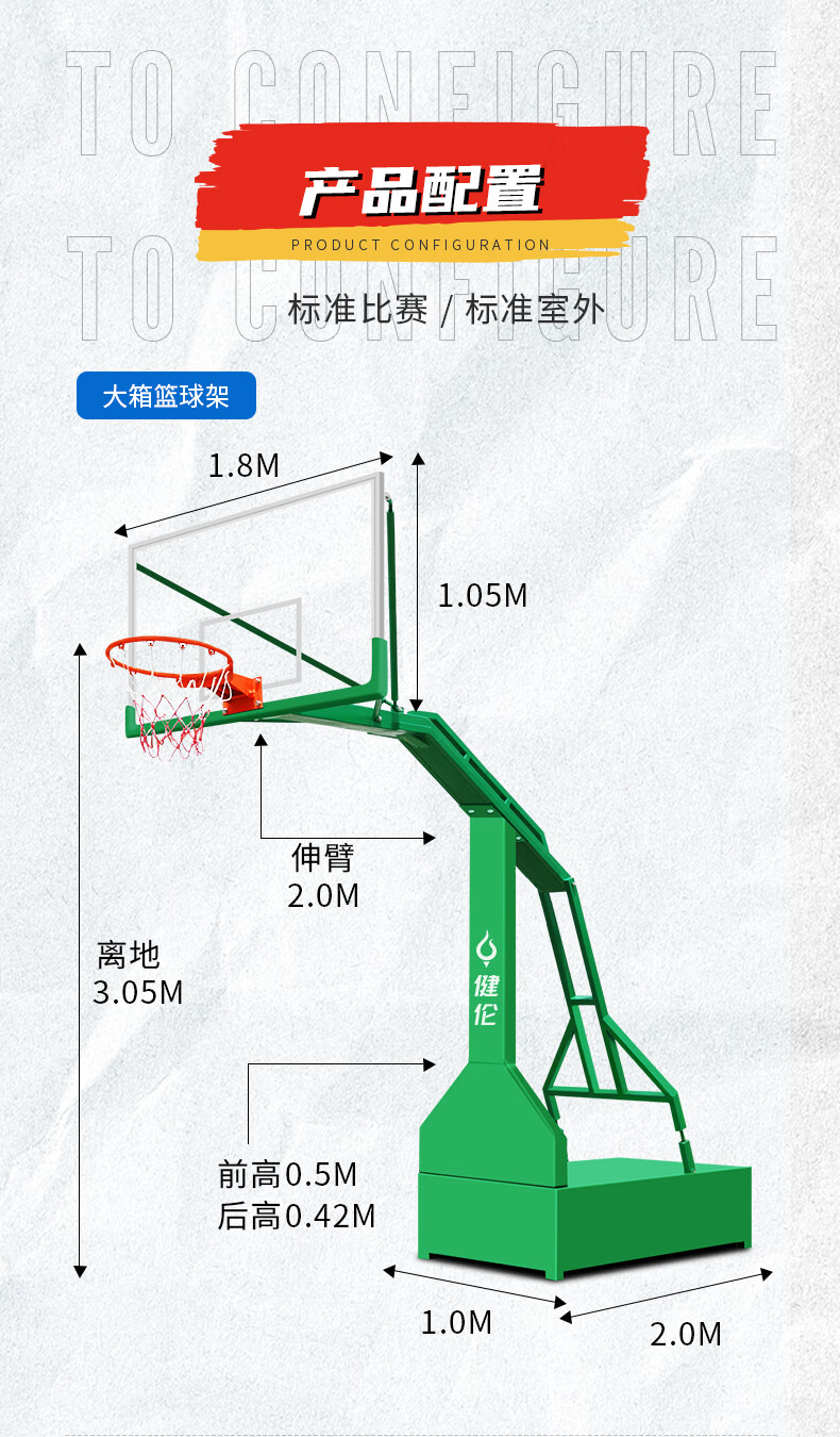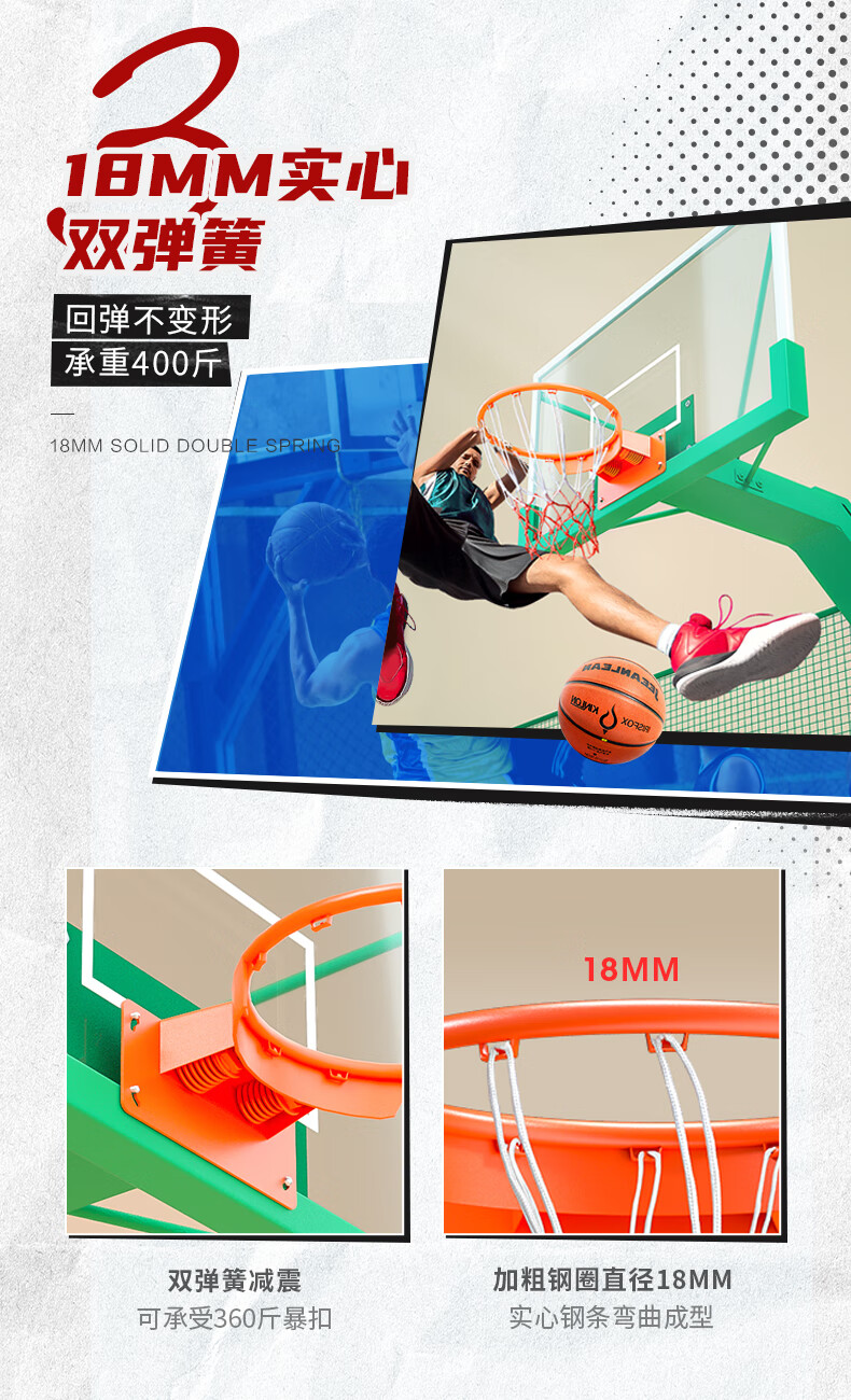 健倫(JEEANLEAN)JLAA161成人標(biāo)準(zhǔn)比賽訓(xùn)練平箱籃球架綠色/單只 自營