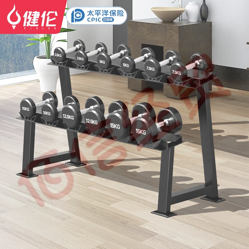健倫(JEEANLEAN)啞鈴男士健身器材啞鈴套裝環(huán)保包膠雙層六幅啞鈴架105KG組合 自營