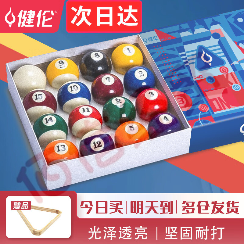 健倫臺(tái)球子黑8水晶球花式16彩標(biāo)準(zhǔn)大號(hào)球臺(tái)球用品桌球TV57.2mmJL-TQ04 自營