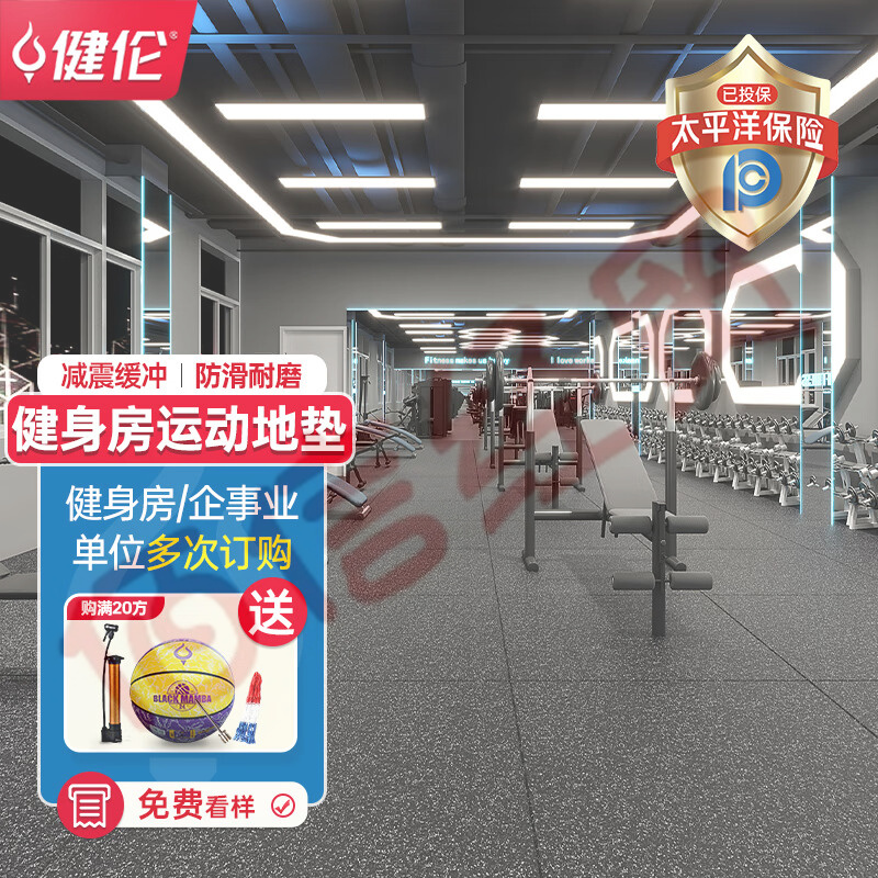 健倫橡膠減震地墊膠啞鈴杠鈴防滑減震隔音防砸緩沖墊50*50*3.5帶槽款 自營(yíng)