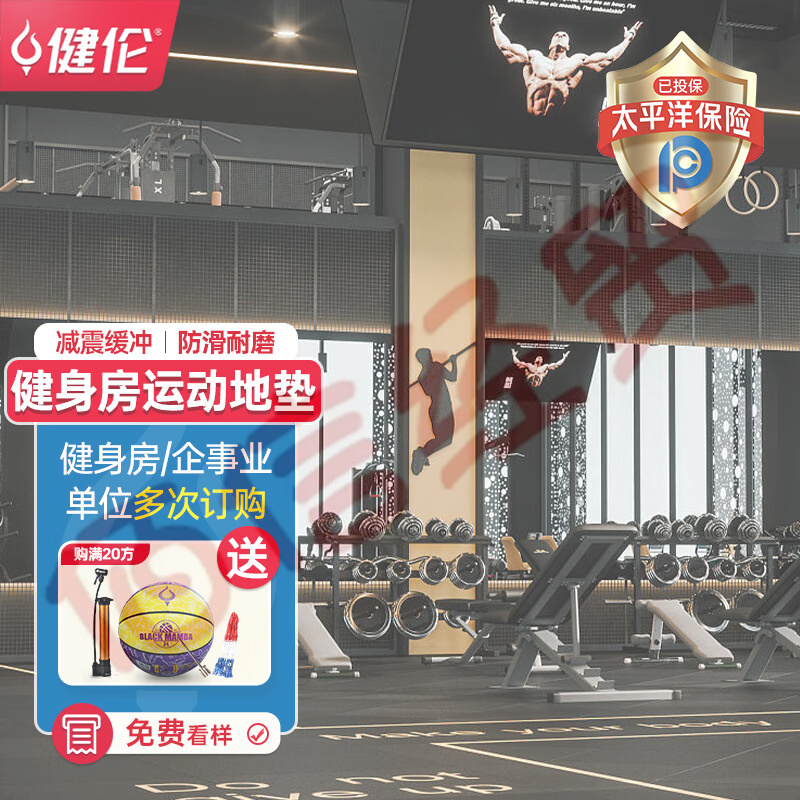 健倫(JEEANLEAN)健身房橡膠地墊 力量區(qū)防砸減震隔音地墊 帶槽款100*100*3.0CM 自營(yíng)