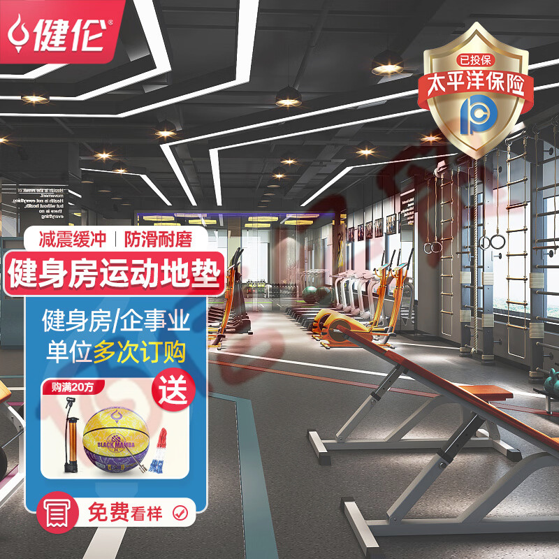 健倫健身房橡膠地墊 力量區(qū)防砸減震隔音地墊 平底款100*100*1.5CM 自營