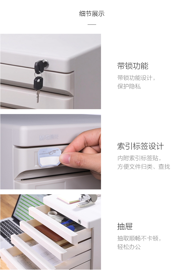 晨光(M&G)文具4層桌面文件柜 抽屜式拉手A4資料收納柜 帶索引標(biāo)簽 辦公用品 灰色、黑色單個(gè)裝ADM95297 自營