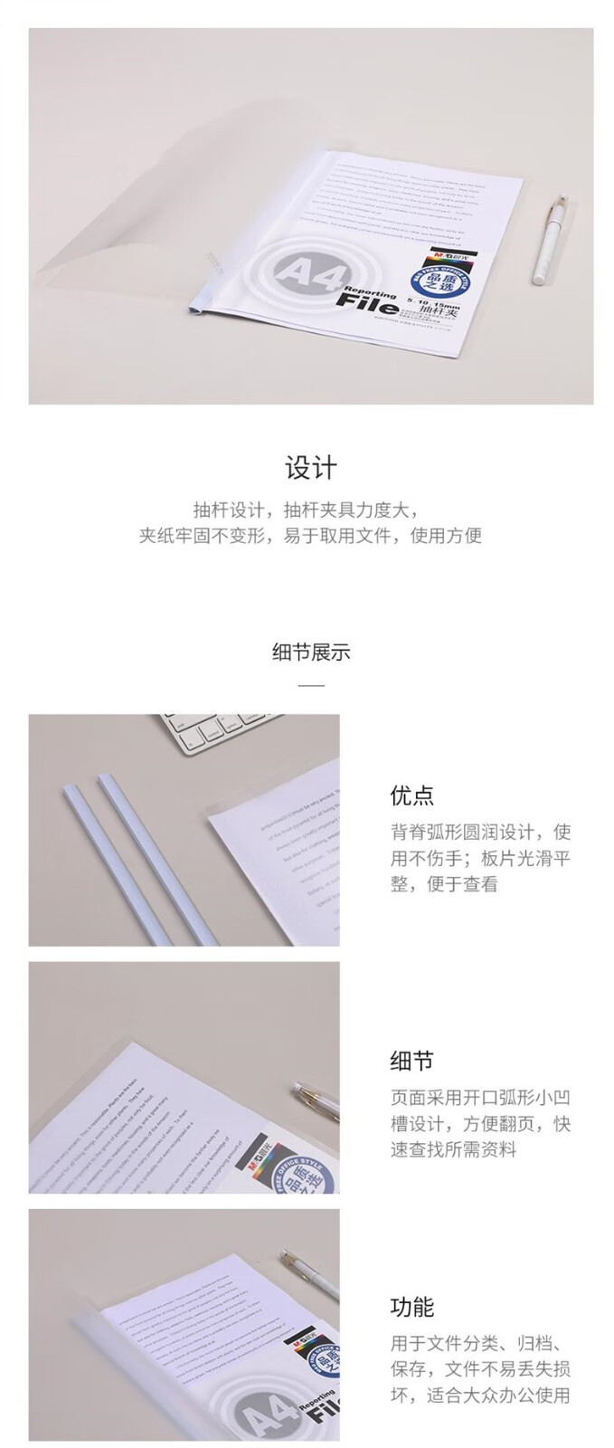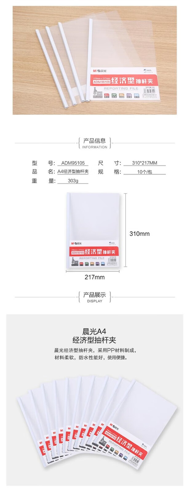 晨光(M&G) 抽桿夾辦公報告夾 資料整理收納文件夾拉桿夾學(xué)生考試收納 ADMN4279抽桿夾25mm白色5個/包 自營