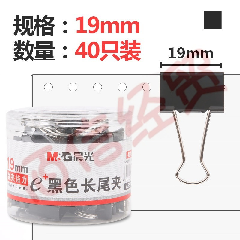 晨光(M&G)長尾夾大號夾子小號多功能書夾子試卷夾燕尾夾鳳尾夾文件夾子文具票夾辦公用品金屬小夾子固定 黑色-19mm(ABS92736)40只 自營