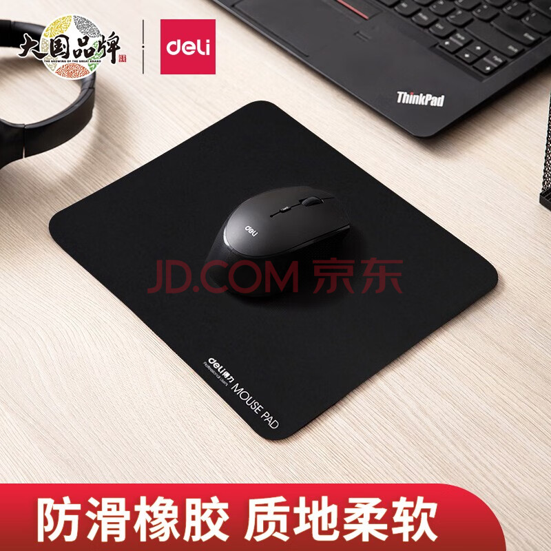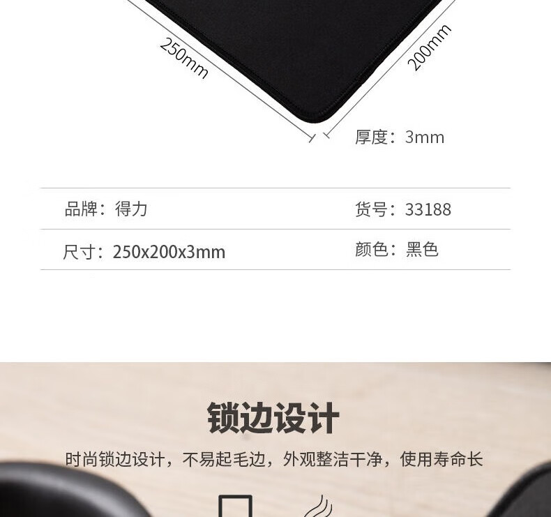 得力 (deli) 鼠標墊 競技游戲鼠標墊 平順耐用加厚鼠標墊 250*200mm 黑色無鎖邊 3692 自營